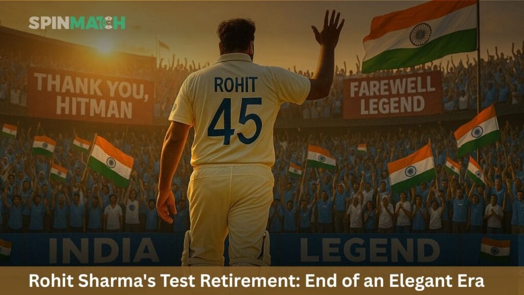 Indian cricket fans woke up in the evening to stunned news on Wednesday when Rohit Sharma suddenly announced his immediate retirement from Test cricket with a short social media announcement. Contrary to the grand farewells extended to the majority of cricketing heroes, this departure was accompanied by little notice – a direct message together with a picture of his Test cap No. 280. Continue reading the blog by Spinmatch sports column on Rohit’s take on test cricket retirement.